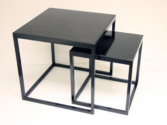 Nest of cube table with flecked granite tops.