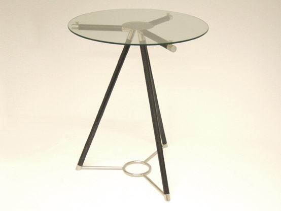 Carbon fibre and stainless steel table, with glass top.